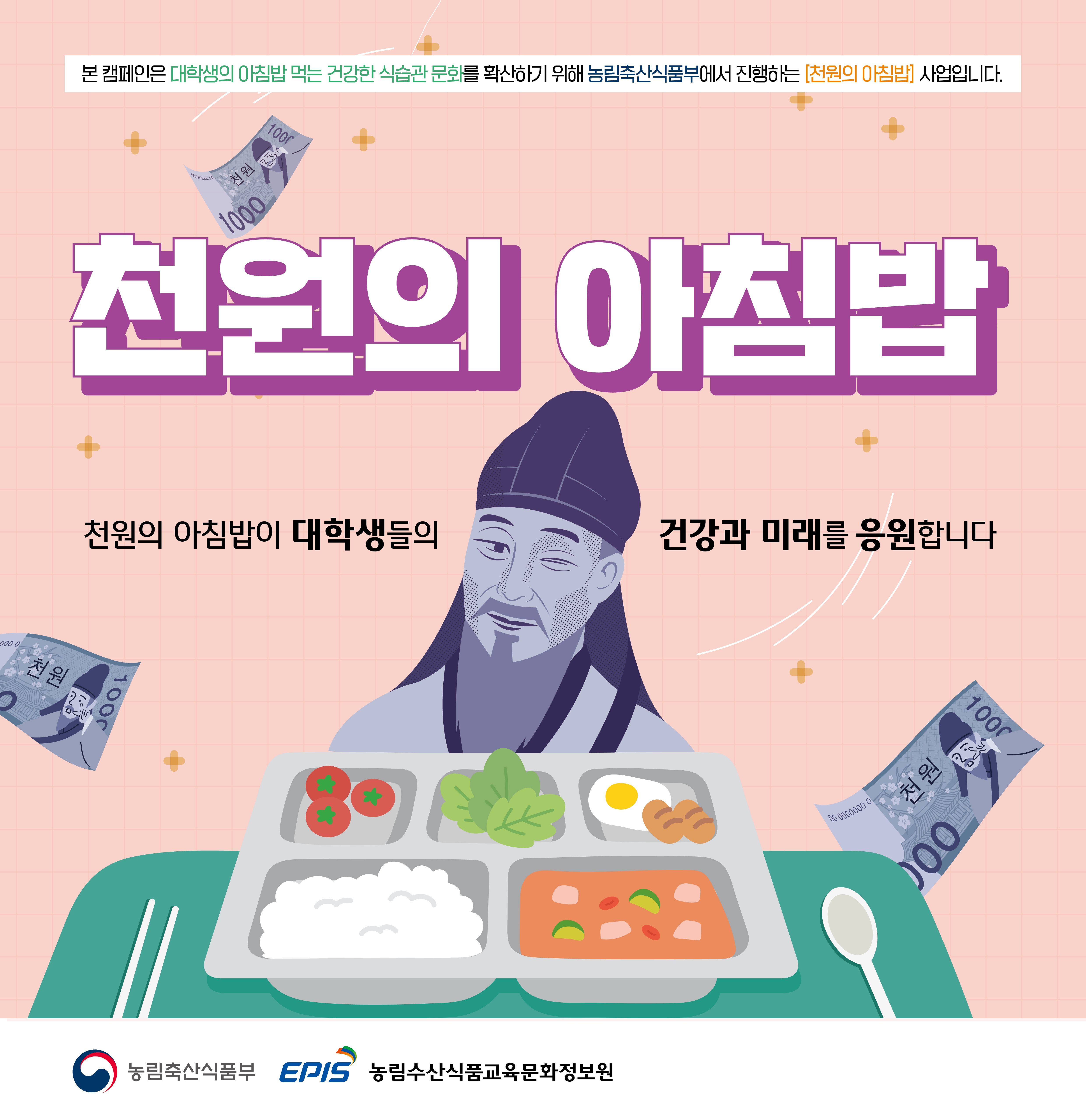 2. 사업내용: 학교 및 정부 부담으로 학생들에게 1천원에 아침밥 제공