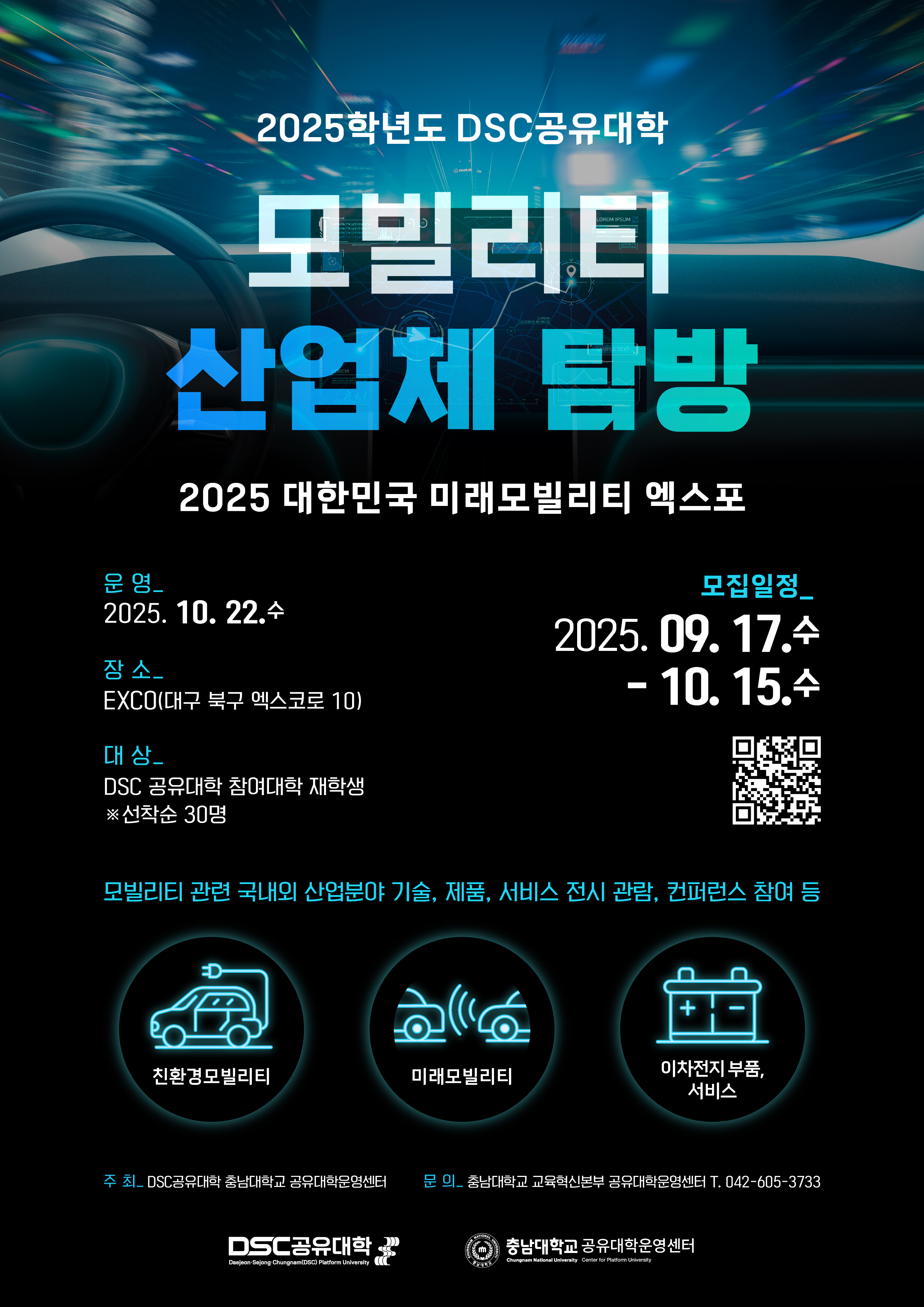 2025년 DSC 공유대학 모빌리티 산업체 탐방 프로그램 (2025 대한민국 미래모빌리티 엑스포) 참여 안내